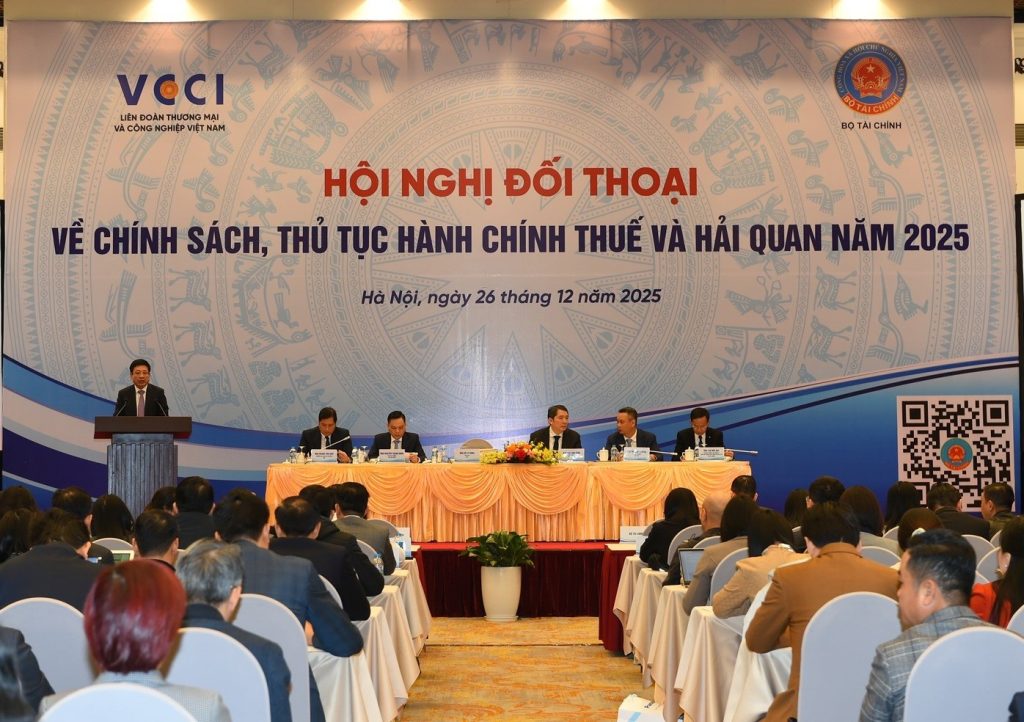 Ngày 26/12 tại Hà Nội, Bộ Tài chính phối hợp với Liên đoàn Thương mại và Công nghiệp Việt Nam (VCCI) tổ chức Hội nghị đối thoại giữa Bộ Tài chính với người nộp thuế về chính sách, thủ tục hành chính thuế và hải quan năm 2025 theo hình thức trực tiếp và trực tuyến trên Trang thông tin điện tử Cục Thuế. Thứ trưởng Bộ Tài chính Cao Anh Tuấn và ông Hồ Sỹ Hùng – Chủ tịch Liên đoàn Thương mại và Công nghiệp Việt Nam (VCCI) đồng chủ trì Hội nghị. Cùng dự Hội nghị có đại diện Lãnh đạo: Cục Thuế; Cục Hải quan; Cục Quản lý, giám sát chính sách thuế, phí và lệ phí; một số đơn vị thuộc Bộ Tài chính, VCCI. Đặc biệt, Hội nghị có sự tham dự trực tiếp của đông đảo người nộp thuế thuộc mọi thành phần kinh tế.