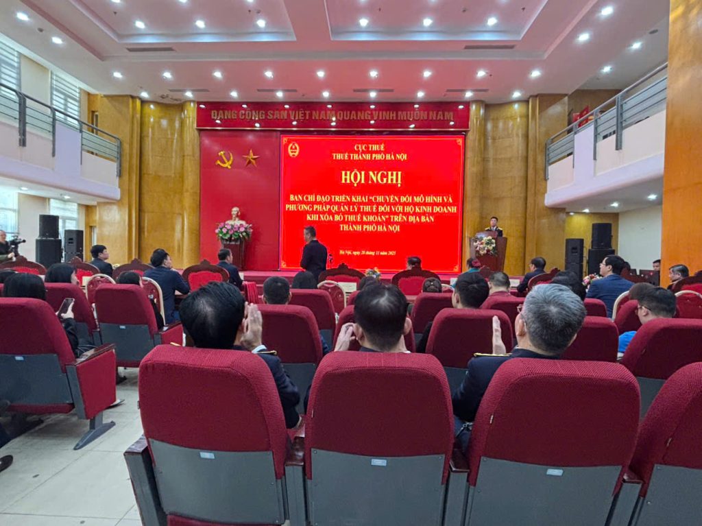 Chiều ngày 28/11/2025 Ban Chỉ đạo Thành phố Hà Nội triển khai “Chuyển đổi mô hình và phương pháp quản lý thuế đối với hộ kinh doanh khi xóa bỏ thuế khoán” trên địa bàn Hà Nội tổ chức hội nghị trực tiếp kết hợp trực tuyến để nghe báo cáo về tình hình triển khai Đề án, Kế hoạch “60 ngày đêm cao điểm”